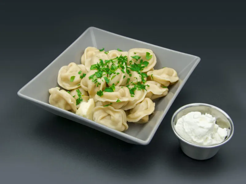 As you know, frozen dumplings from the store are inferior in every way to homemade ones. At the URA! restaurant we prepare beef and pork dumplings by hand according to the original Russian recipe. We use only high-quality local products. Thanks to this, dumplings stuffed with minced pork and beef turn out tasty and juicy. If you like dumplings, ravioli, tortellini, khinkali, manti, knedle, dim sum, gyoza, jiaozi, then be sure to try Russian pelmeni. The price of pelmeni (Russian dumplings) may be reduced, keep an eye on promotions and special offers!