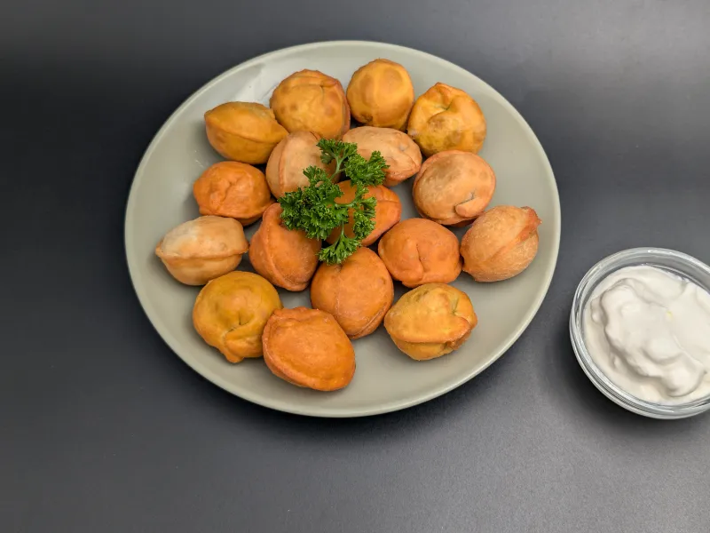 Тесто пуњено млевеном пилетином, луком и маслацем. Јужна верзија пељмена.